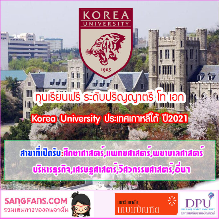 ทุนเรียนฟรี ระดับปริญญาตรี โท เอก Korea University ประเทศเกาหลีใต้ ปี2021